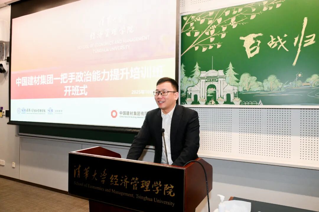 10月22日,中国建材集团“一把手”政治能力提升培训班在清华大学经济管理学院开班。集团党委副书记、总经理常张利出席开班式并作动员讲话,党委常委、纪委书记刘磊应邀出席。清华大学经济管理学院副院长何平出席开班式并致辞。开班式由清华大学经济管理学院高管教育中心主任助理陈凤主持。